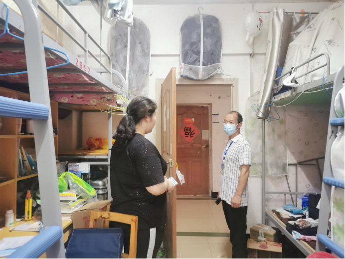 两批毕业生返校当晚,学院党总支书记邓顺松带领全体辅导员和毕业生班主任前往学生公寓看望同学们,食品科学与工程专业毕业生孙敏说道:“一出火车站,看见学校的接人标志就感觉特别温馨,到达校园后,浓厚的毕业氛围,学院和老师的热情关怀、周到服务、以及贴心的防疫礼包和毕业礼物,让我特别感动,我想我们永远不会忘记这份温暖。”