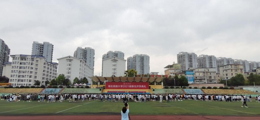 本网讯(通讯员 熊紫仪/文 余俊兰 宋逍林/96日365电子娱乐官方网站新生开学典礼在五环体育场举行。
