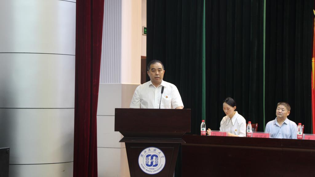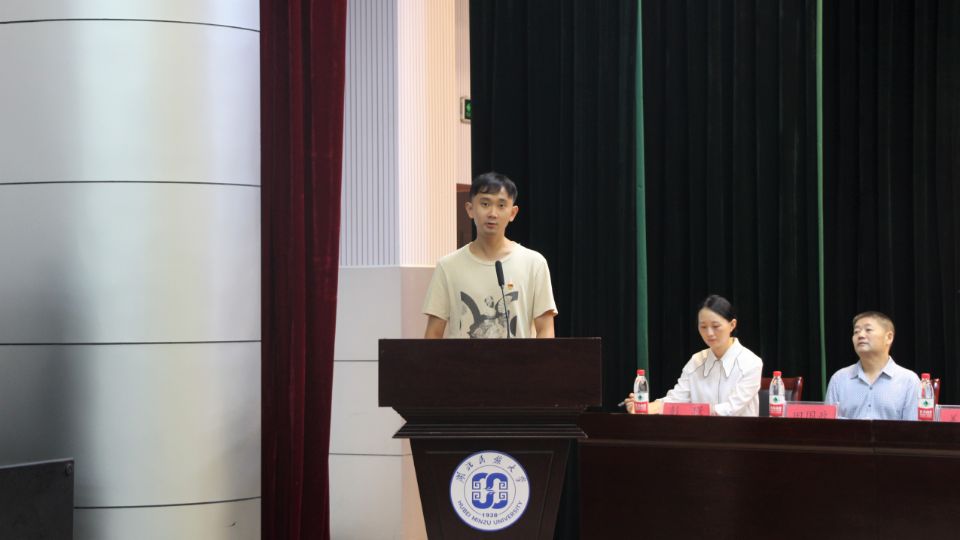 我院青年教师王海波代表教师发言。他表示作为新生班主任和研究生辅导员要做到为同学们营造良好环境和关爱个体差异,祝愿大家在365电子娱乐官方网站有一个精彩的大学生活。