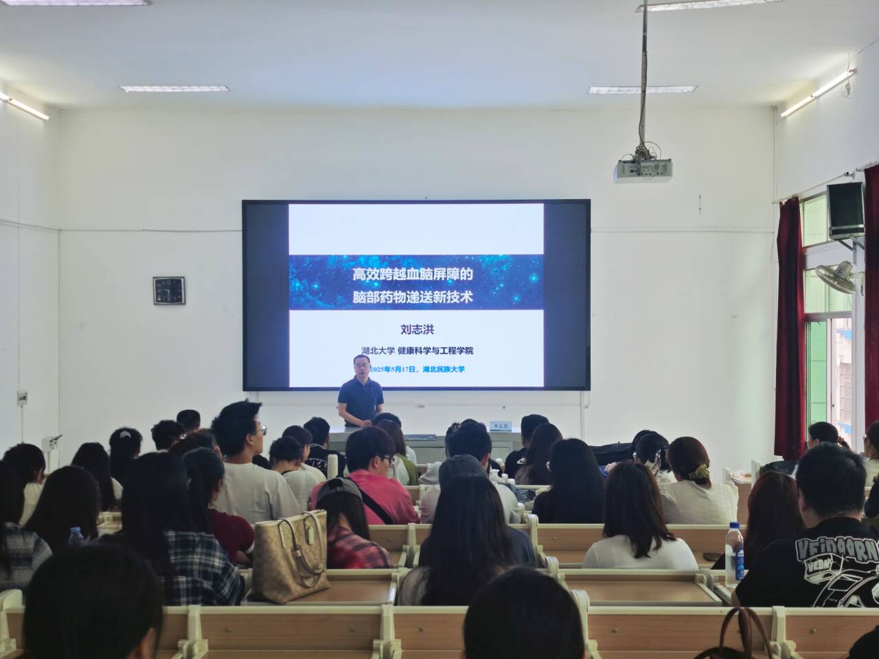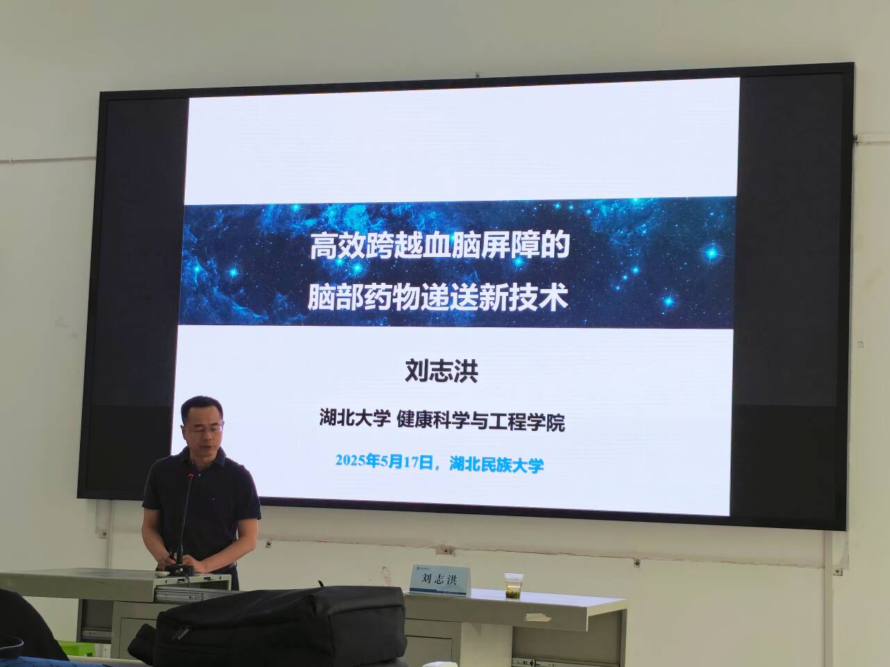 (本网讯 王智勇、孙甜/文,贺金萍、孙甜/图)2025年5月17日,国家杰出青年科学基金获得者、科技部“创新人才推进计划”及“万人计划”科技领军人才、湖北大学副校长刘志洪教授应邀莅临我校作题为《高效跨越血脑屏障的脑部药物递送新技术》的学术讲座。本次讲座365电子娱乐官方网站副校长刘伦志教授主持,我校教师代表及生物与食品工程学院、化学与环境工程学院硕士研究生聆听讲座。