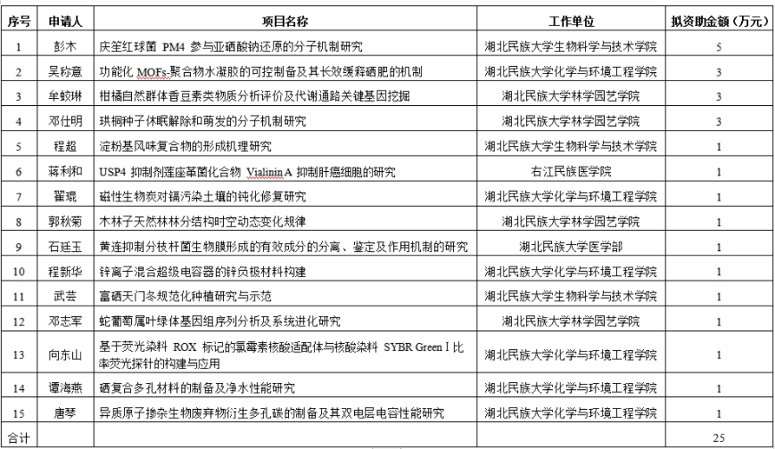 生物资源保护与利用湖北省重点实验室2022年开放基金拟资助项目公示