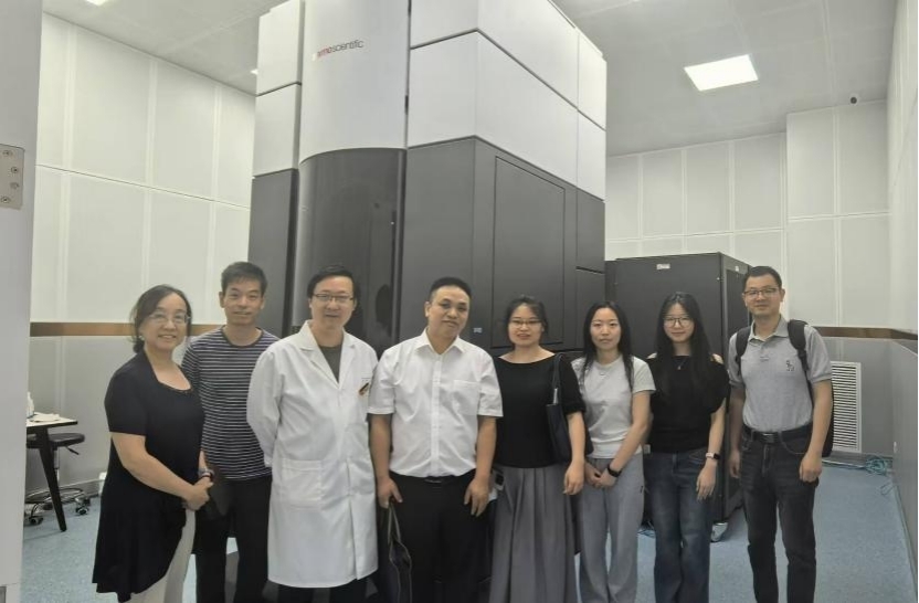 湖北大学生命科学学院科研实验平台参观  与在湖北大学生命科学学院读硕的毕业生校友在冷冻电镜前合影