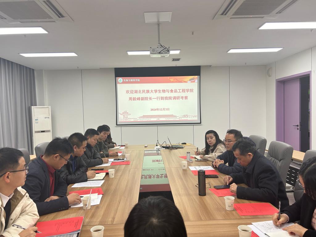 12月3日,生物工程专业一行人首先前往宜昌三峡大学,与三峡大学生物与制药学院的何正权副院长、龚大春教授、涂璇副教授进行座谈交流。会议重点聚焦工程认证培训和一流专业建设经验,探讨了地区特色课程设计、精品课程建设、双语教学推广、国际交流合作以及实习实训模式优化等内容。三峡大学代表详细介绍了国家一流专业建设中的创新实践和成效,并分享了在工程认证中的宝贵经验。双方围绕特色课程开发与国际化教育路径等议题深入探讨,提出一系列建设性建议,为生物工程专业优化课程设置提供了新思路。