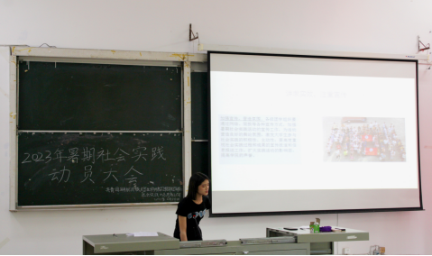 2022年优秀暑期社会实践优秀团队代表陈柳进行经验分享,她从注意事项、注重宣传、保障安全和总结交流四个方面进行了经验分享。随后,2022年优秀暑期社会实践优秀个人代表王章梨从“选择支教的原因”、“支教过程”、“社会实践成果”和“社会实践的感想”进行分享,她希望利用自己的专业知识能给孩子们带去一些知识的拓展和力所能及的改变。接着,由高佳颖宣读2023年暑期社会实践活动实施方案相关文件,让同学们更好了解社会实践的相关要求。
