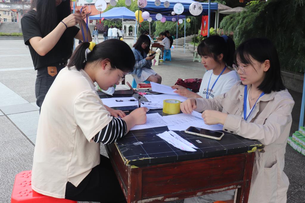 该活动线上群内打卡线下游戏环节两种形式开展线上打卡环节要求学生在群内每天按时在规定时间内连续打卡21学生们的参与度很高最终有86名同学完成任务线下游戏区设定成语接龙”,踩气球大作战”,真人棋子”,心心寄语四个游戏环节只需要完成三个游戏就可以到指定区域领取两个小奖品完成两个游戏也可以获得一个小奖品正值今天520是个特殊的日子“”心心寄语”小游戏中场上准备了贴纸片的展板不少人落笔生花进行许愿祝福期待心想事成在纸上写下对亲人家人朋友爱人的表白话语场上氛围高涨欢愉一片此外场上还设置了书法创造区供学生创作体验学生之间相互交流书法的魅力评价彼此的书法水平一展自我风采