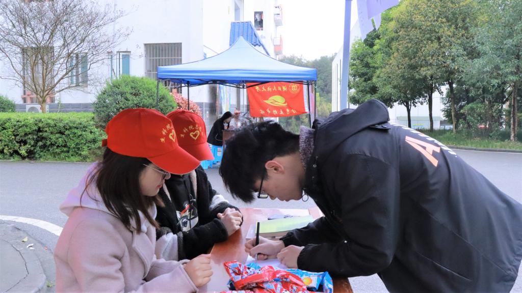 本次活动分别在立人宿舍、达人宿舍、博学宿舍前设立三处募捐图书图书站点,我院志愿者在站点为捐献人员详细介绍募捐活动的要求及注意事项,记录捐献人员的个人信息并向其发放捐献奖品。在我院青年志愿者协会前期的大量宣传和志愿者辛勤的工作下,我校许多师生都积极参与到募捐活动中。
