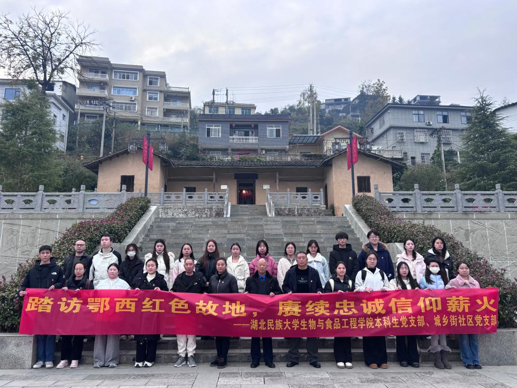 本网讯(通讯员 程琴 陈旭睿)12月11日下午,我院本科生党支部联合恩施高新区六角亭街道城乡街社区党支部共赴恩施党员政治生活馆,开展“踏访鄂西红色故地,赓续忠诚信仰薪火”红色主题教育实践活动。党支部书记陈杰、组织纪检委员程琴及2025年秋季新接收的预备党员、新转入党员以及社区老党员代表参加此次活动。