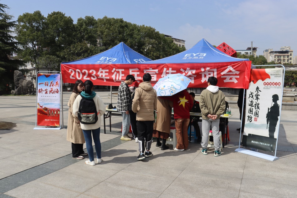 在活动现场,以悬挂征兵宣传标语、制作宣传展板、发放征兵宣传手册等方式,就2023年应届毕业生参军报名条件、应征流程、优惠政策向大学生们作了详细的介绍和解答。通过多次活动,现场登记应征意向学生80余人,现场报名30余人,发放征兵宣传册300余份,收到了较好的宣传效果。