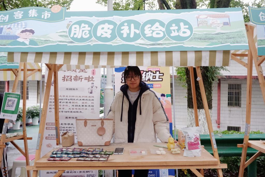 本次集市在轻松有序的氛围中,自然形成了三大特色交流区域——养生青年专享区、手作创意体验区与零食福利抢购区,为师生带来丰富多元的创意互动与购物体验。