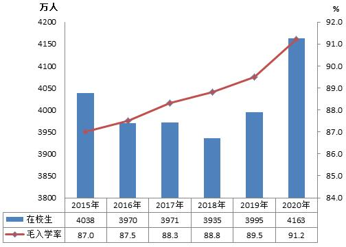 4  “十三五”时期高中阶段教育在校生和毛入学率