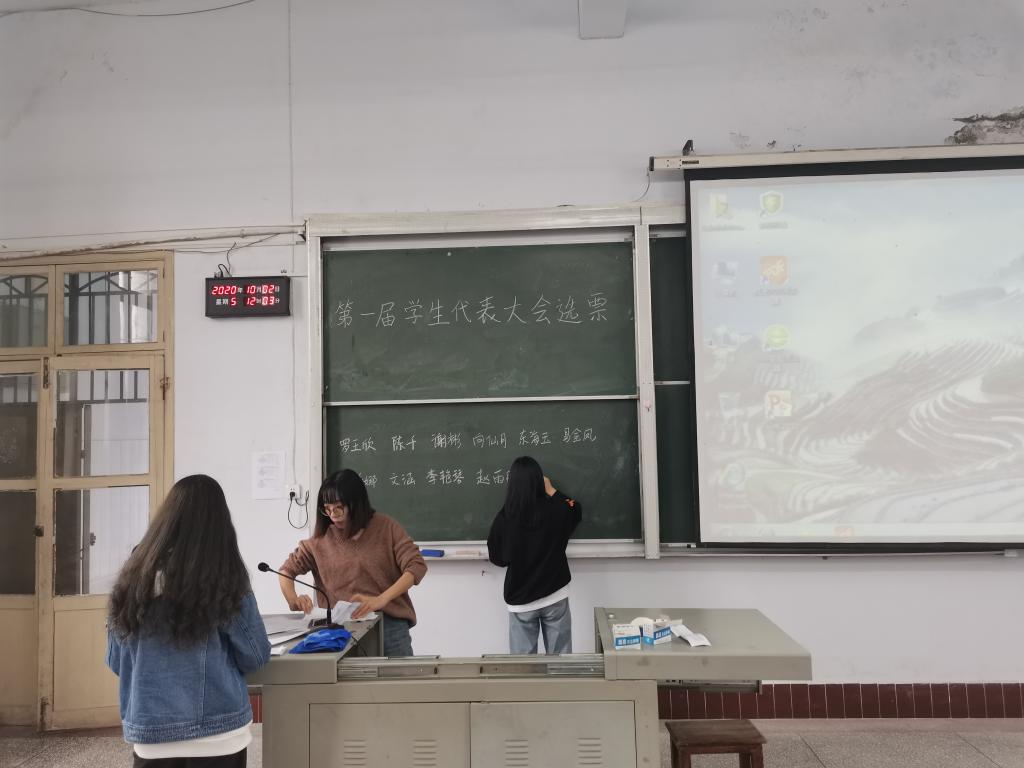 活动伊始,活动负责人向各班代表发放选票,学生科老师田甜、陈小双清点各班人数到齐情况,并向学生说明选举流程、选票填写要求。接着,通过在场同学的投票,负责人收齐选票并进行唱票、统计。最后,候选人陈千、谢彬、东海玉等十三人,成功竞选为第一届学生代表。