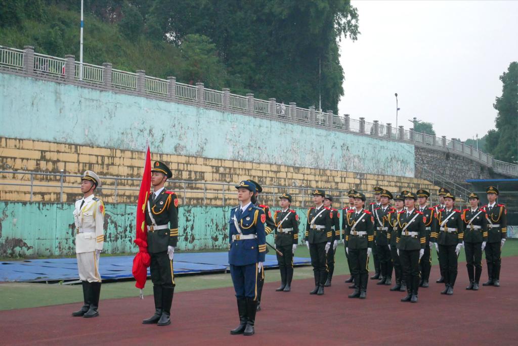 威武严整的校国旗护卫队迈着铿锵的步伐,踏着有力的节拍,将五星红旗冉冉升起,拉开了此次活动序幕。活动伊始,全体在场人员齐唱中国共青团团歌,接着,李艳琴同学带领支部成员面向团旗宣誓,重温团员使命。此外,顾辰贤和李文雅两名优秀团员作为学生代表依次发表演讲,活跃了现场的良好氛围。活动最后,陈小双老师进行微团课,她表示今年是极其特殊且不平凡的一年,国家和相关工作者在此次抗击疫情中辛苦付出、无私奉献,并强调了世界上没有什么岁月静好,只是有人替我们负重前行的思想。