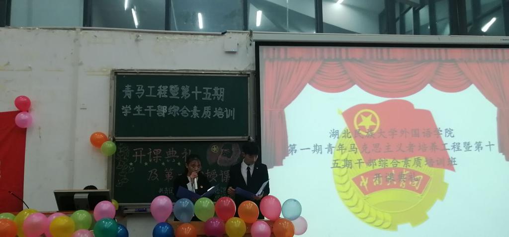 活动伊始,在全体成员起立奏唱团歌后,首先由陈小双老师宣读《外国语学院青马工程培训班培养方案》,粟登平老师致辞后青马工程学员代表李艳琴及干训培训班学员代表胡迪发言。
