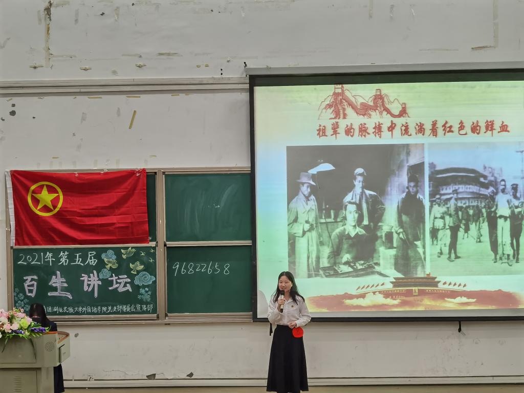 经过初赛的激烈角逐,共有十名选手进入决赛。本次百生讲坛活动分为主题演讲和学习一点通两个环节。一号选手邹胜主题演讲题为“民族团结共奋进,我辈齐心筑强国”她以H&M辱华事件展开,将主题扩展至国家团、民族团结层面,呼吁新时代青年维护民族团结。学习一点通环节,她和同伴的表演极具感染力,赢得观众阵阵掌声。十号选手李晶题为“星星之火,可以燎原”的主题演讲深情讲述了英雄刘胡兰的故事,她投入的演讲激起观众对英雄真挚的敬意。八号选手张祉琪演讲主题为“历史照亮未来 征程未有穷期”,从习近平总书记为抗战英雄颁发奖章到红色记忆世代相传,她讲述了我们国家的红色革命历史。她有力地说道“一个有希望的民族不能没有英雄,一个有前途的国家不能没有先锋。”最终,她以98.1分的高分一举夺得桂冠。