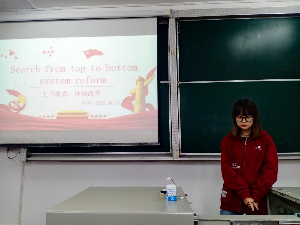 时间:2022-04-18 编辑:学生科 点击:(本网讯 刘邦 摄影 周淼淼)在1992年10月举办的的中共十四大上,江泽民明确指出:“中国经济体制的改革目标是建立社会主义市场经济体制。”为深刻领会市场经济体制改革的精神内核 ,4月17日晚,外国语学院开展以“上下求索,体制改革”为主题的党史连连讲活动。