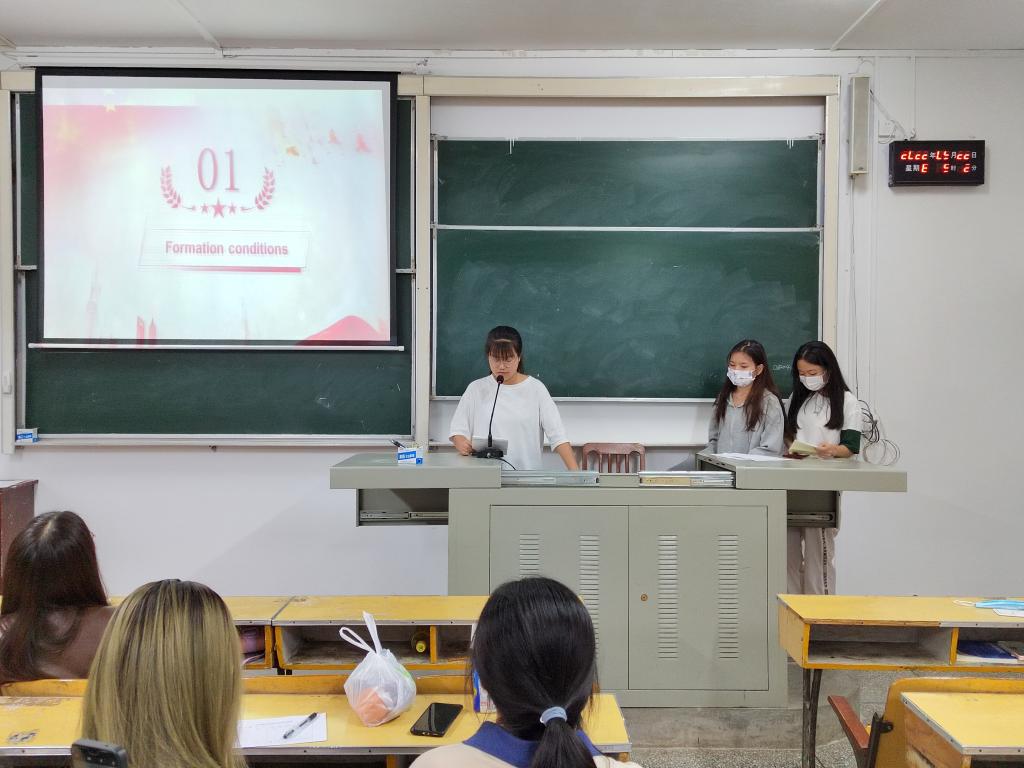(本网讯 刘邦 摄影 张艺佳 杨田)2001年7月1日,在庆祝中国共产党成立八十周年大会上,江泽民系统阐述了“三个代表”重要思想。2022年5月22日晚,外国语学院开展以“三个代表,立党之基”为主题的党史连连讲活动。