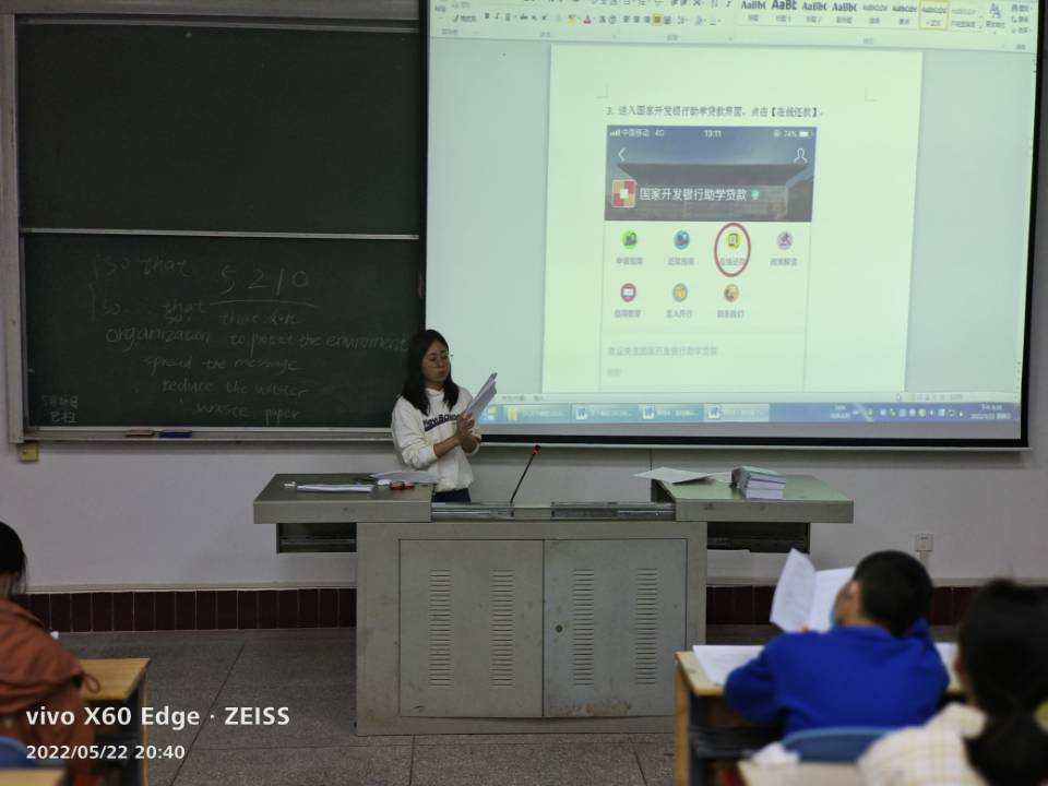 为帮助生源地贷款毕业生了解、掌握还款流程和相关注意事项,树立诚信还款意识,增强法律和契约意识。我院于5月22日晚上7点在外国语学院6401开展了2022届生源地贷款学生集中培训。本次培训由学生科负责奖助贷工作的汪丽娟老师主讲,2022届贷款毕业生参加本次会议。