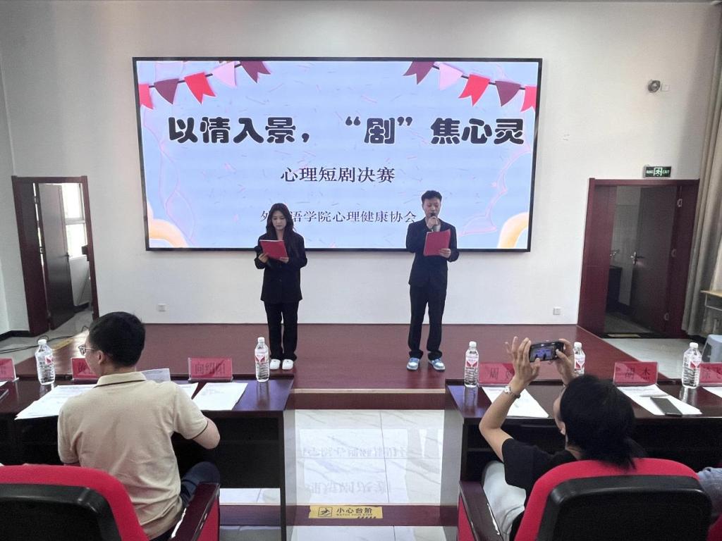 时间:2024-05-29 编辑:办公室 点击:为深入开展365电子娱乐官方网站第十九届心理健康教育月活动,恰逢5月25日大学生心理健康日,外国语学院心理健康协会精心策划并举办了以“以情入景,‘剧焦心灵”为主题的心理短剧大赛,外国语学院学生科负责人向绍阳,辅导员黄祖耀、周婷、胡杰担任评委,全体百余名学生共同参与了本次活动。
