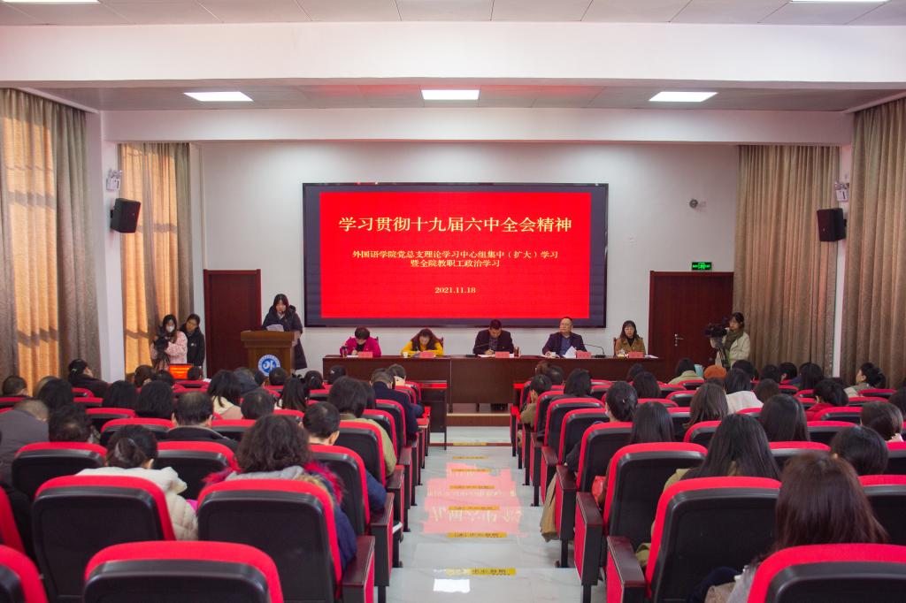 外国语学院党总支副书记、院长骆贤凤在发言中通过四个关键词“意义深远、鼓舞人心、催人奋进、人民至上”谈了学习体会。他表示,要紧密结合党史学习教育,分层分类学习贯彻十九届六中全会精神,带动广大党员干部和教职员工学思践悟、融会贯通,有效推动全会精神深入师生、深入基层、深入人心。