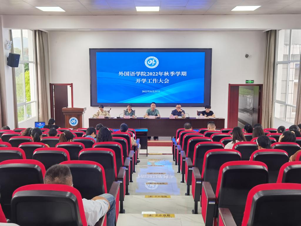8月31日,外国语学院2022年秋季学期开学工作大会在学院四楼学术报告厅召开。学院党总支书记严森主持会议,学院班子成员、全体教职工参加会议。