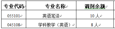 3. 调剂考生第一志愿报考专业与我院招生专业相同或相近。“英语笔译”只接受报考(055100)翻译硕士、(055101MTI英语笔译、(055102MTI英语口译、(050201)英语语言文学学术硕士、(050211)外国语言学及应用语言学学术硕士的考生调剂申请;“学科教学(英语)”只接受报考(045108)学科教学(英语)的考生调剂申请。