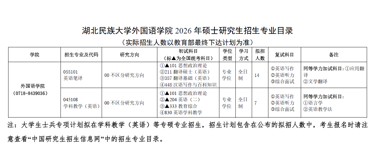 365电子娱乐官方网站外国语学院2026年硕士研究生招生专业目录