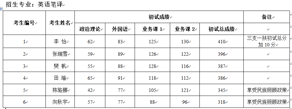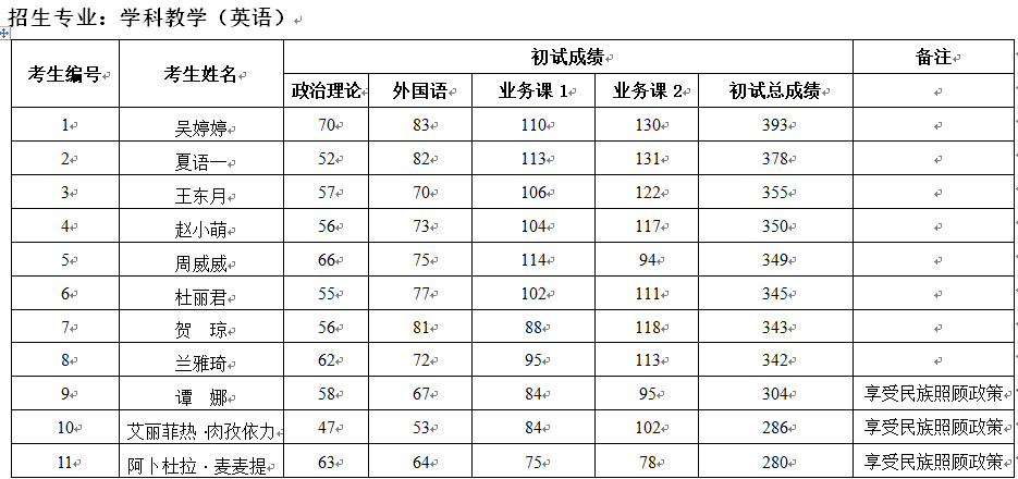 365电子娱乐官方网站外国语学院2026年硕士研究生招生第一志愿复试名单