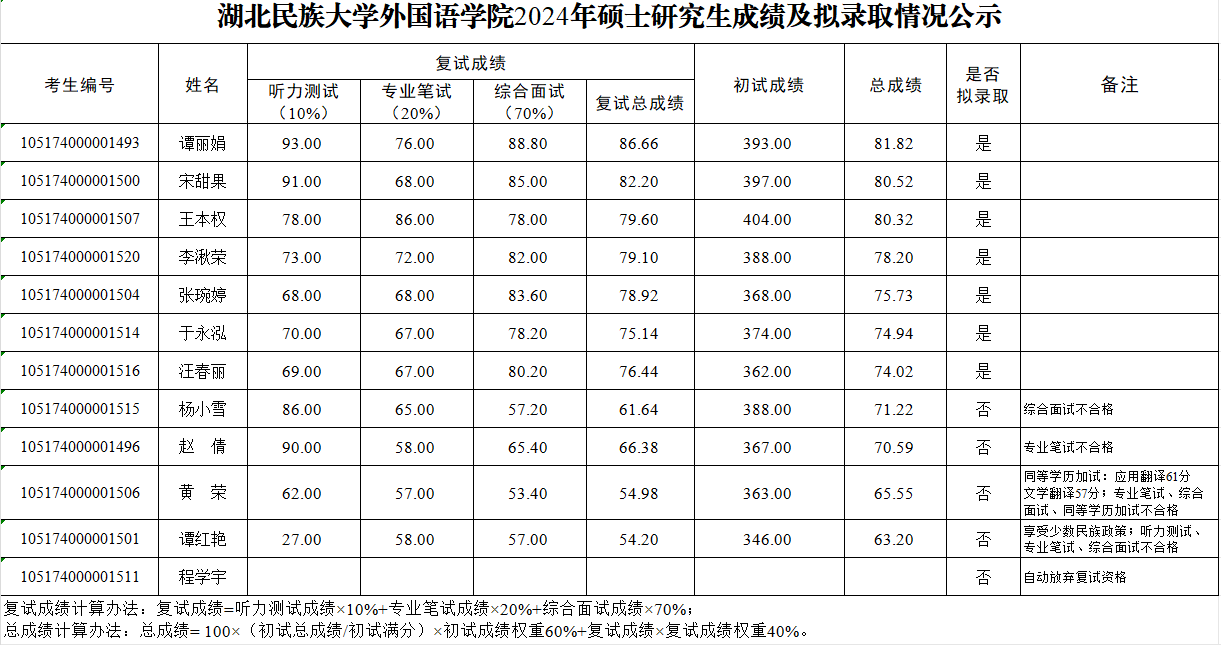 365电子娱乐官方网站外国语学院2024年硕士研究生成绩及拟录取情况公示