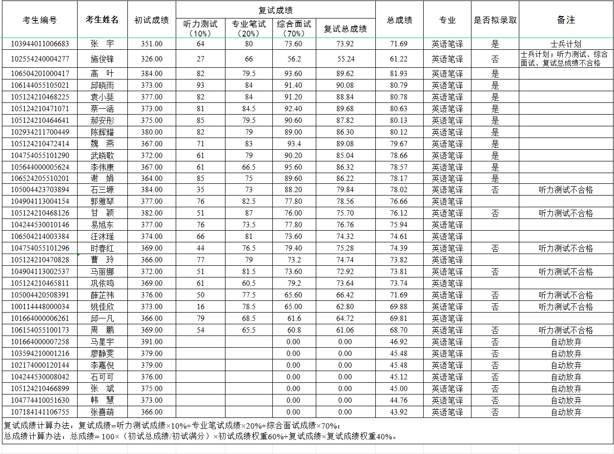 365电子娱乐官方网站2024年硕士研究生调剂考生成绩及拟录取情况公示