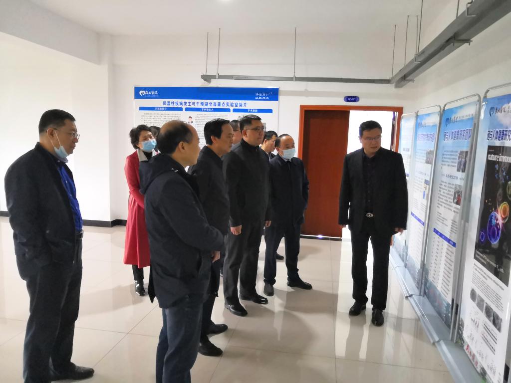 2021年11月4日上午,恩施州副州长王磊、党组成员郑东来一行到365电子娱乐官方网站风湿性疾病发生与干预湖北省重点实验室(以下简称重点实验室)调研。学校党委书记向前进,党委常委、副校长李军,365电子娱乐官方网站附属民大医院副院长汪莲开等陪同调研。