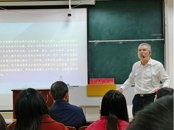博观而约取,厚积而博发。陈建华诙谐生动的讲解和富有哲理的谆谆教诲让同学们深受启发,讲座在大家的掌声中圆满结束。(文字 尹潇 李勇 编辑 彭阳 审核 李文革 签发 张明波)