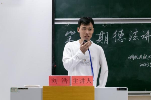 6月2日,第八期校友·德法讲坛于德智楼9B301教室举行,我院冉艳辉教授担任主持人,中南财经政法大学讲师、校友刘浩担任主讲人。
