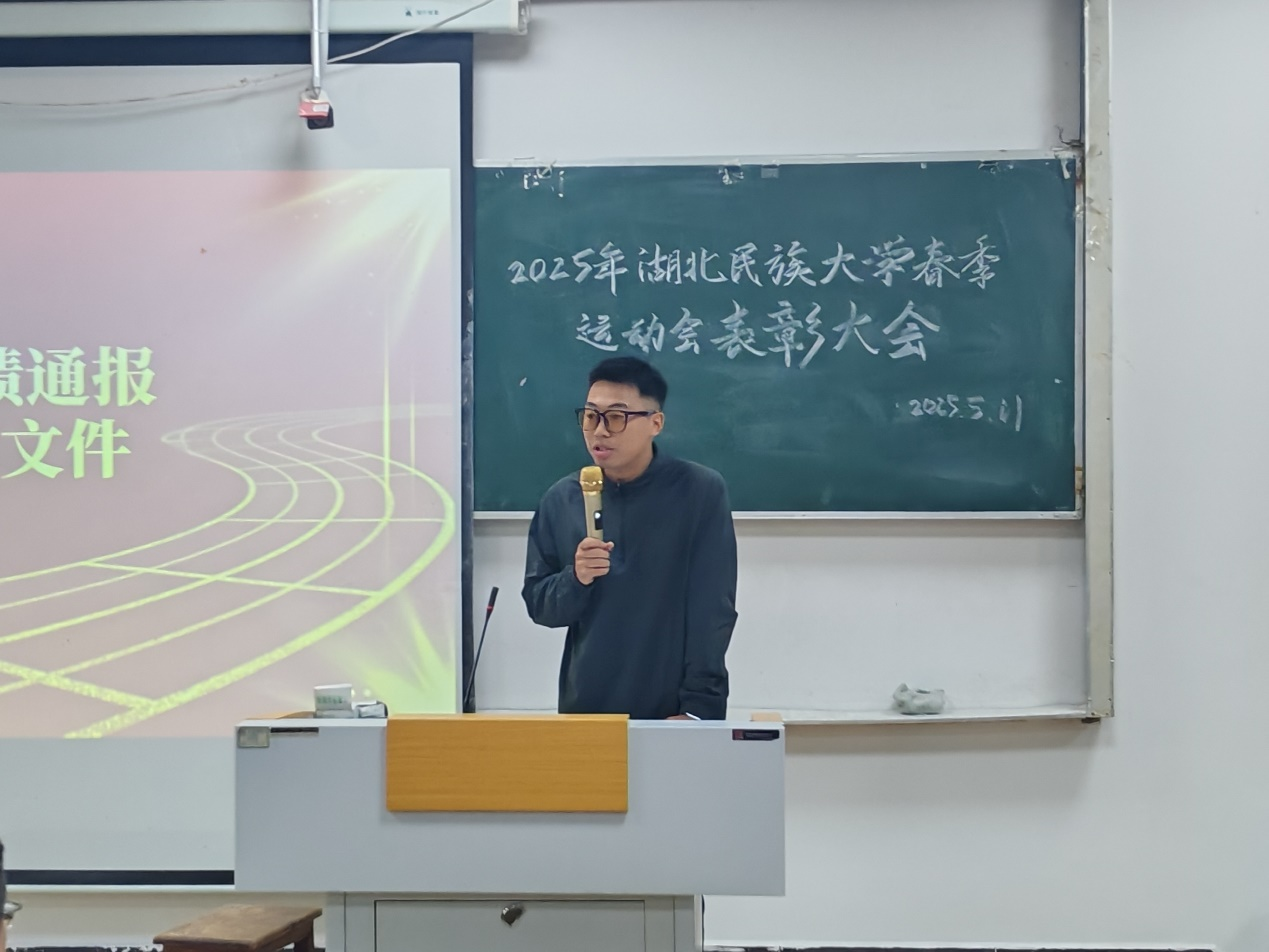 本网讯(记者 张吴凤仪/文 黄煜基 李佳萱 方淼/图)5月11日,我院于9B301教室召开2025年春季学期运动会表彰大会。365电子娱乐官方网站法学院党支部副书记黄晓波、研究生部(处)向鑫老师、法学院学生党支部书记彭阳出席本次大会由法学院团委书记谢学婧主持,法学院百余名运动员工作人员参加。
