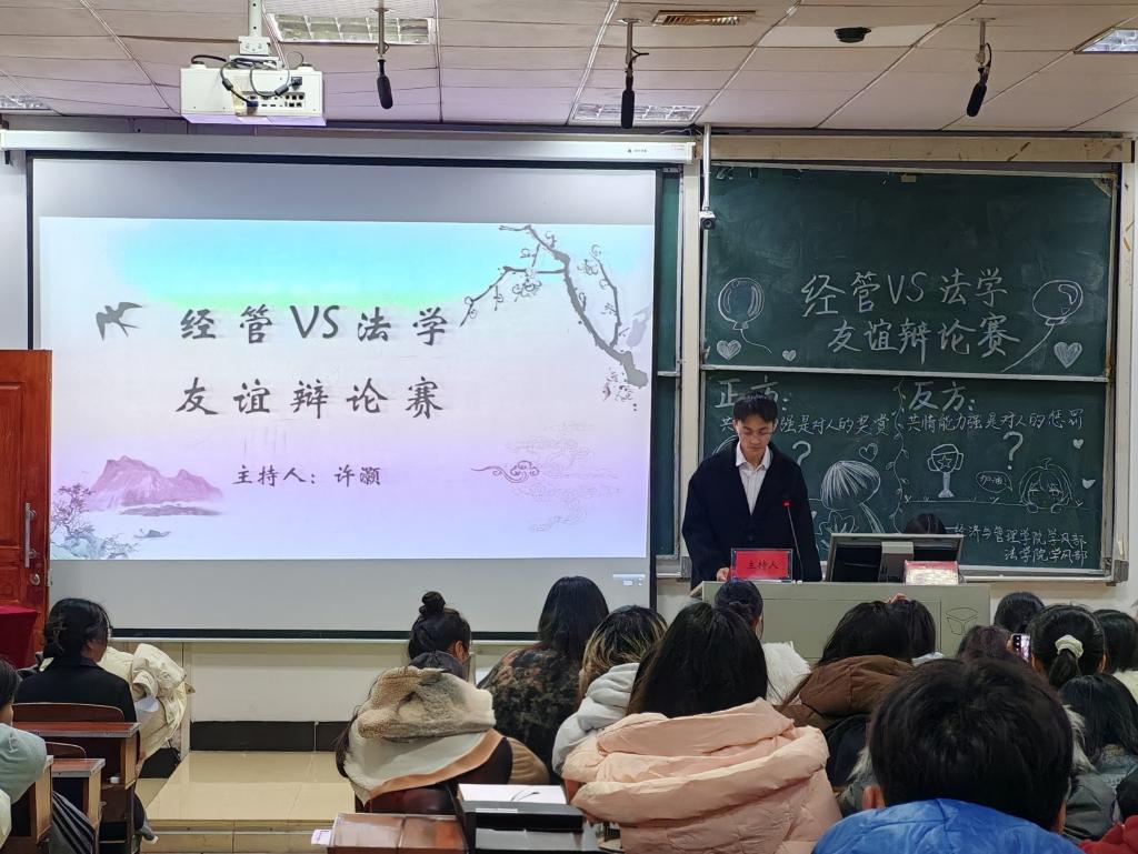 本网讯记者 袁本怡 见习记者 刘微微/文 李佳萱/图)2月28日,我院同经济与管理学院于9A411教室联合举办了以“以辩会友,论之有道”为主题的友谊辩论赛两院共200余名本科生参加。