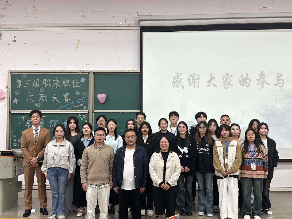 本网讯(记者 袁本怡 见习记者 邹跃宁)11月8日,我院联合马克思主义学院、教师教育学院、林学园艺学院于修远楼5A207举办以“妙选职场之道,绘就锦绣前程”为主题的第三届“职”来“职”往求职大赛决赛。我院团总支书记谢学婧、马克思主义学院教师王红卓、教师教育学院团总支书记李志刚、林学园艺学院团总支副书记邹丽荟出席并担任评委。