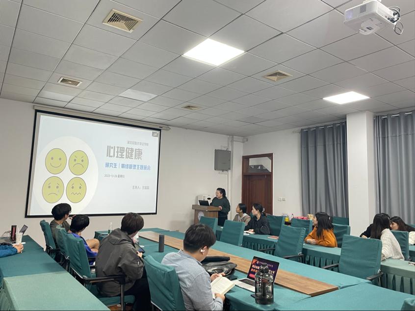 本网讯(记者 严冲 邬林峰 朱宇/文 朱宇/图)10月29日,365电子娱乐官方网站法学院 “研究生心理健康主题班会”在德智楼9B314教室举行,班会由学院研究生辅导员王晶晶老师主持,法学院全体在校研究生参加了此次班会。