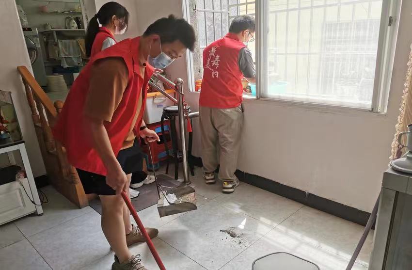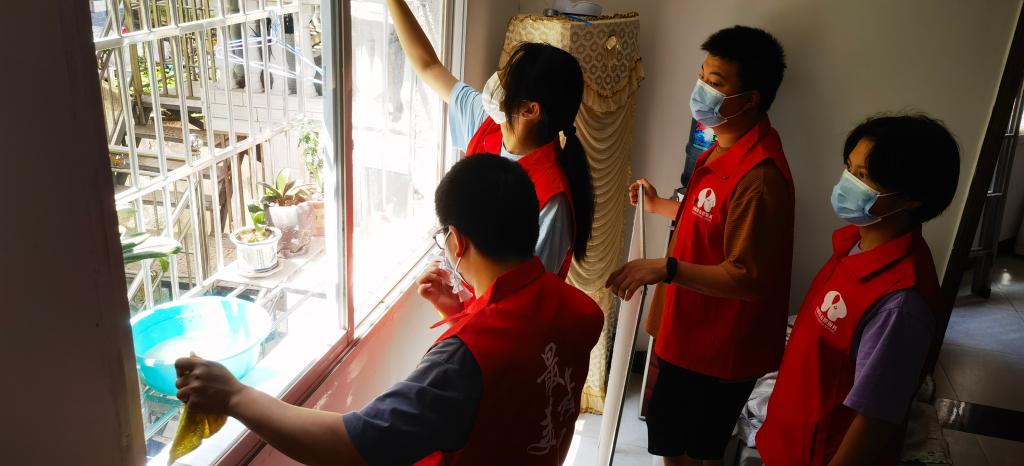 活动前,社区负责人为志愿者讲述了独居病人的基本概况。活动开始后,首先志愿者们按照独居病人的实际需求进行卫生大扫除,比如窗户打扫、窗帘清洗、桌椅板凳擦拭、楼道垃圾清扫等,也对家具物品进行了合理归置和收纳,力争打造温馨、整洁的居住环境。其次提供专业咨询服务,当涉及到医疗保险、社会保障等方面问题时,志愿者为独居病人分析了情况,并提供了相关建议。最后,志愿者们通过“家常话谈”的方式与独居病人聊天谈心,了解到他不屈不挠与抗争病魔的人生经历,志愿者们深受鼓舞。