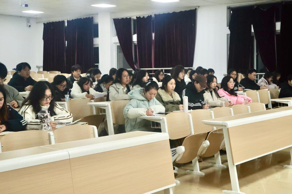 20251221日,我院党总支书记张明波于德智楼9B301教室进行主题为“深入学习贯彻党的二十届四中全会精神 奋力开创中国式现代化新局面理论宣讲。我院50余名学生入党积极分子、预备党员、正式党员参加学习