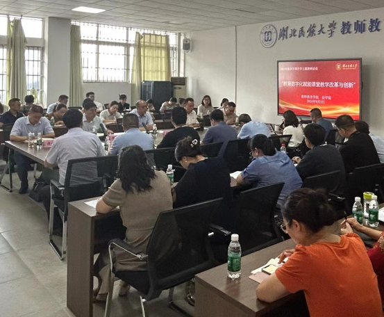 教研活动由检查组组长、人事处处长池永文主持。教研活动伊始,我院党总支书记张明波汇报了新学期开学工作情况。在主题交流发言阶段,教师教育学院罗华陶教授分享了超星学习通平台建设课程的经验。我院法学专业负责人冉艳辉教授围绕“教育数字化赋能课堂教学改革与创新”介绍了《立法理论与实务》课程中数字化工具的应用、教学改革的具体举措以及取得的成效。研讨与提问环节,与会的教师教育学院、法学院领导班子成员及教师针对教学中遇到的问题展开了深入探讨和交流。