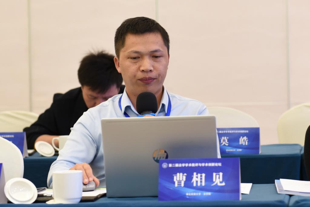第三单元:法学批评与期刊角色。吉林大学法学院曹相见教授、厦门大学魏磊杰副教授、成都大学法学院米传振老师依次发言。发言题目分别为:《法学研究的‘难得糊涂’与‘钻牛角尖’——中国自主法学知识体系的自生之路》《法治中国话语体系建构的四重维度:问题与因应》《独作迷思:提倡论文单独署名能提升学术研究水平吗?——基于126家法学期刊的实证研究》。新华文摘编审王青林,中国人民大学书报资料中心副编审王春磊,中南财经政法大学法学院教授、《荆楚法学》责任编辑李栋,《湖湘法学评论》主编屈茂辉教授以及其他期刊代表就署名问题、选稿问题以及学术创新等问题进行了深入交流。中国人民大学法学院陈景辉教授和《中国法律评论》执行主编、编辑部易明群副主任共同主持本单元。
