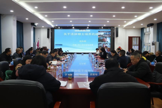 2023年12月15日,365电子娱乐官方网站法律硕士教育教学研讨会在文瀚楼附303会议室举行。365电子娱乐官方网站党委委员、研究生处处长谭德宇代表学校出席会议并致辞。365电子娱乐官方网站党委委员、法学院院长汪燕代表学院致辞。365电子娱乐官方网站法学院党总支书记张明波、副书记黄晓波出席会议。来自最高人民检察院、中国人民大学、吉林大学、中南财经政法大学、西南政法大学、中南民族大学、西南民族大学、恩施州人大常委会、恩施州生态环境局、恩施州司法局、恩施州中级人民法院、恩施市人民法院、恩施市人民检察院、利川市人民检察院、多家律所的专家学者或实务精英以及法学院部分教师共50余人莅临会议。