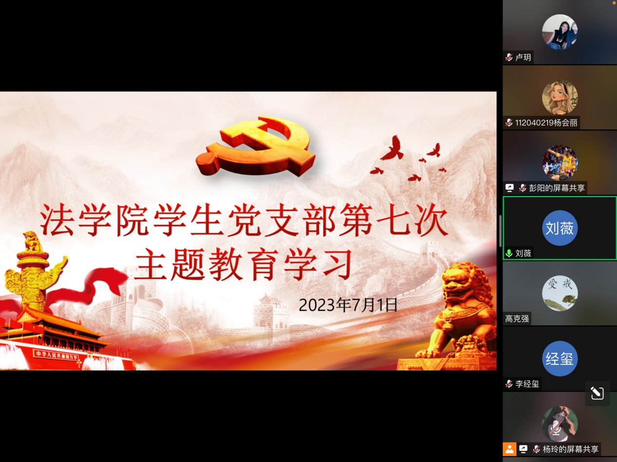 本网讯为深入学习贯彻党的二十大精神和习近平新时代中国特色社会主义思想主题教育庆祝中国共产党成立 102 周年,弘扬伟大建党精神,进一步引导全院师生党员牢记初心使命,坚定理想信念,汲取奋进力量71日,法学院教工党支部在德智楼9B314、学生党支部通过腾讯会议形式开展了主题党日。