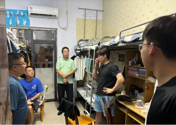 走访过程中,学院领导及老师同学生亲切交流,详细了解留宿期间的复习备考、暑假兼职、集中实习以及返乡安排等情况,同时检查了宿舍安全设施,提醒同学们留宿期间要增强安全意识,牢记安全第一,遇事及时联系班主任老师,并针对学生提出的问题给予帮助与指导,为学生的成长成才保驾护航。