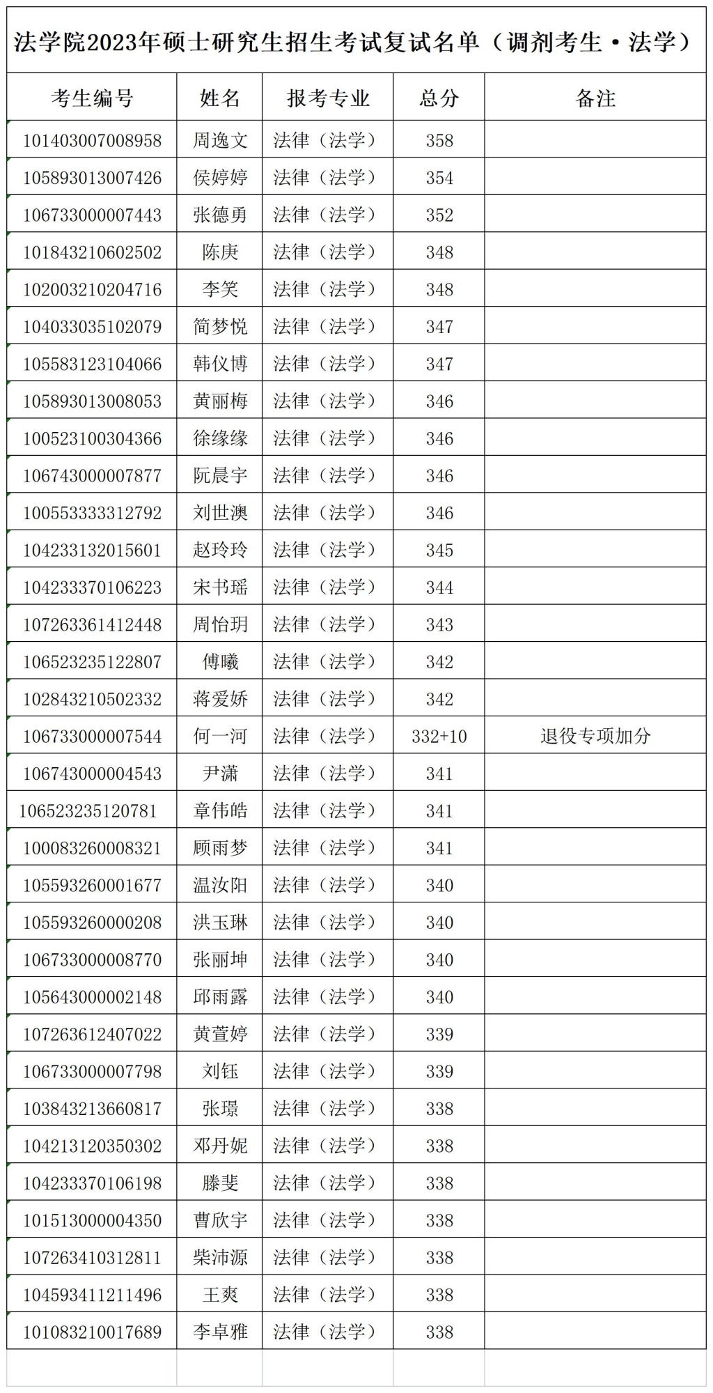 365电子娱乐官方网站法学院2023年硕士研究生调剂考生复试名单(法学)