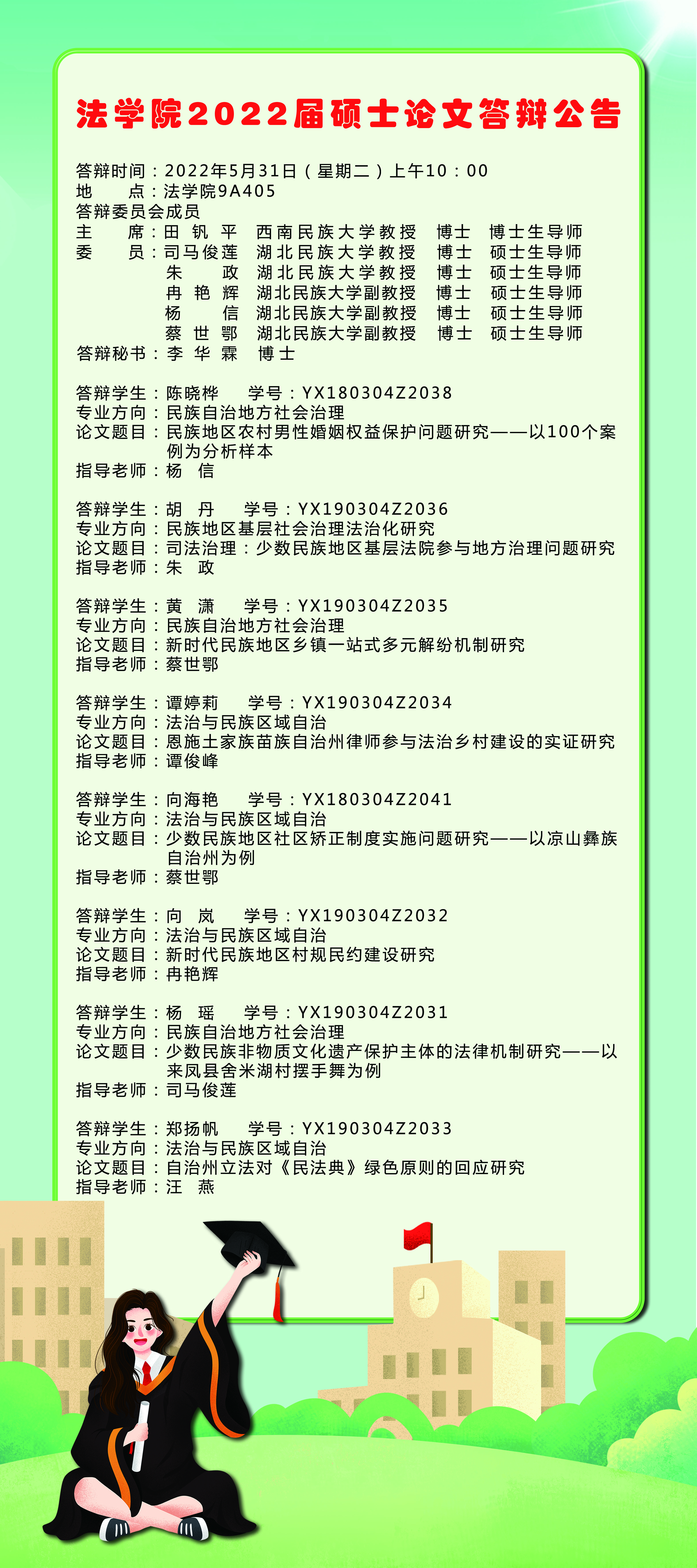 法学院2022届硕士论文答辩公告