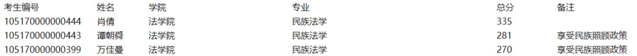 根据教育部公布《2020年全国硕士研究生考试考生进入复试的初试成绩基本要求》(国家分数线),2020年报考我院民族法学专业的考生,达到国家线人数3人(其中享受少数民族照顾政策的考生2人)。