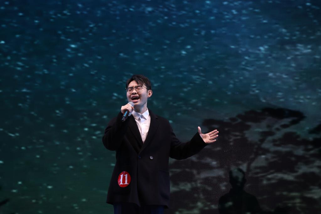 决赛舞台上,学生组歌手轮番登场。一号选手崔洁玲率先以《传奇》拉开帷幕,她嗓音清透如月光,搭配优雅从容的站姿与舞台朦胧的追光,似将跨越时空的浪漫悄然诉说。七号选手谢俊贤以《后来》唤醒青春记忆,温柔沙哑的嗓音里满是故事感,站姿舒缓从容,满是怀旧温情。十号选手刘梓昂的《想你的夜》则自带氛围感,磁性低音缓缓流淌,渐强的声线裹着深夜的绵长思念,将情绪揉进音符里,让全场沉浸在这份缱绻中。