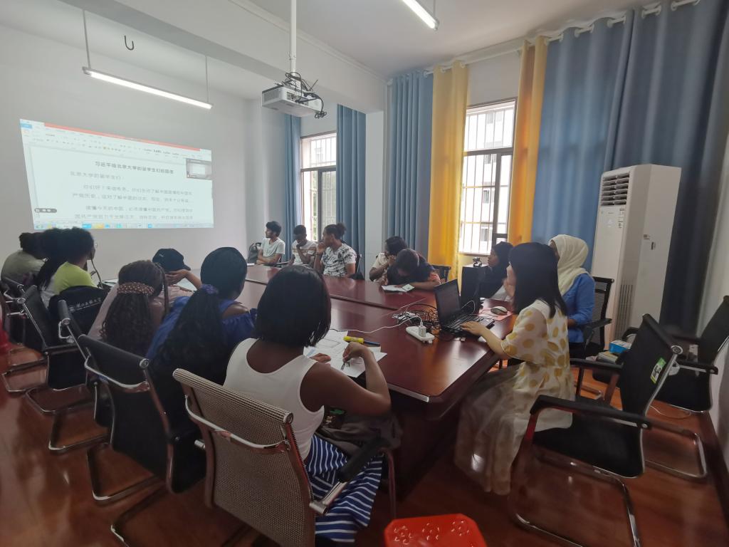 组织国际学生学习习近平总书记给国际学生的两封回信也是国际交流合作处支部7月支部主题党日特色实践活动。庆祝建党100周年之际,传达习近平总书记对国际学生的关怀,让学生深入了解中国,了解中国共产党,培养学生“知华、友华、爱华”的情怀,引导学生讲好中国故事。