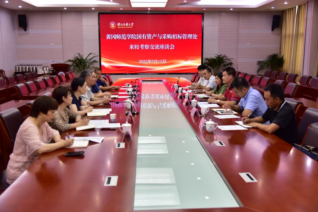 7月12日,黄冈师范学院国有资产与采购招标管理处王成胜处长一行7人到我校考察与业务交流。我校国有资产与招投标管理处处长赵德勇,副处长申阿东、董凯以及实验室建设与管理处处长雷辉等相关人员参与考察交流活动。
