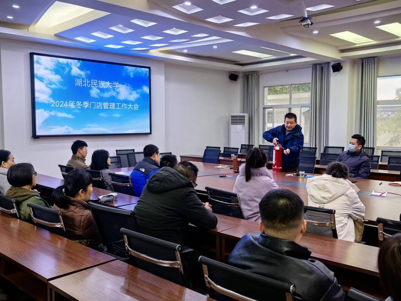 会上,保卫处、后勤保障部、房地产管理科相关人员分别从校园交通安全管理、消防安全知识以及灭火设备的使用、爱国主义卫生运动要求、用水用电安全、门店日常管理共性注意事项、食品贮存及操作间管理等方面进行阐述,以案例现身说法,贴近实际,从操作层面具象化各项要求。